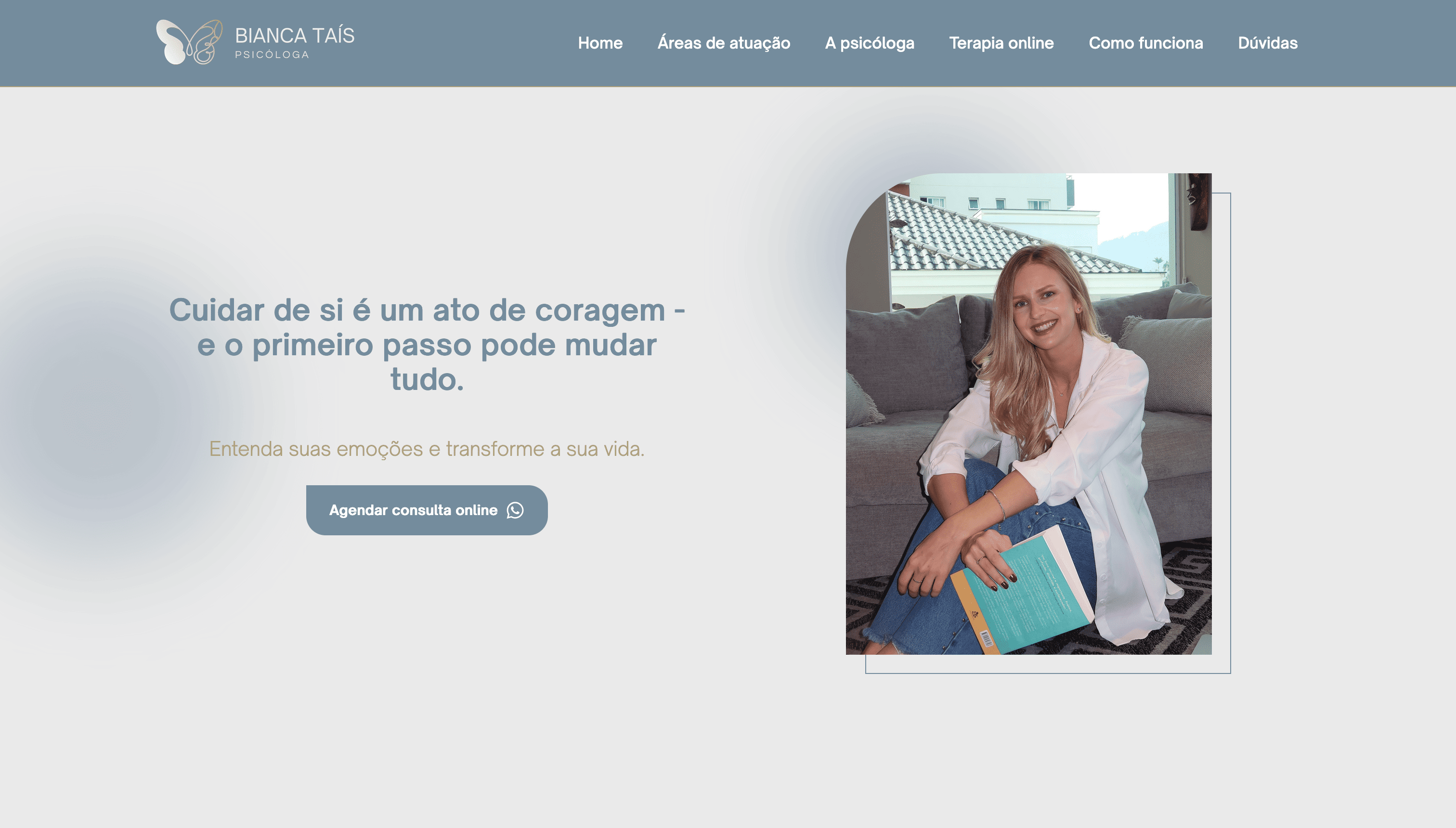 Landing Page desenvolvida para psicóloga, com foco em geração de leads e fortalecimento da conexão com o cliente. O projeto prioriza a responsividade, experiência do usuário e design limpo, garantindo acessibilidade em diferentes dispositivos e facilitando o contato direto com a profissional.